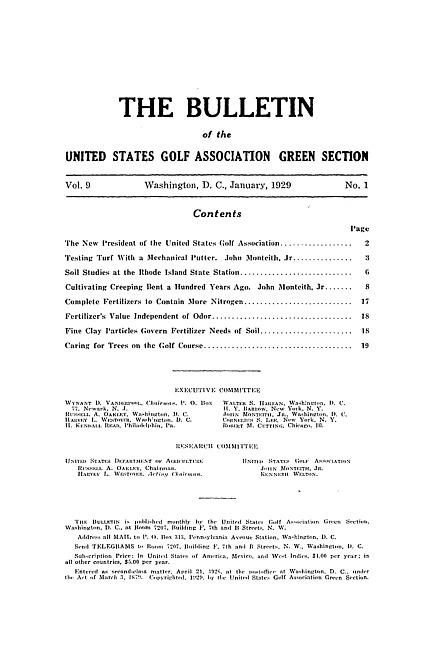 The bulletin of the United States Golf Association Green Section. Vol. 9 no. 1 (1929 January)