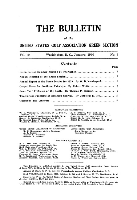 The bulletin of the United States Golf Association Green Section. Vol. 10 no. 1 (1930 January)