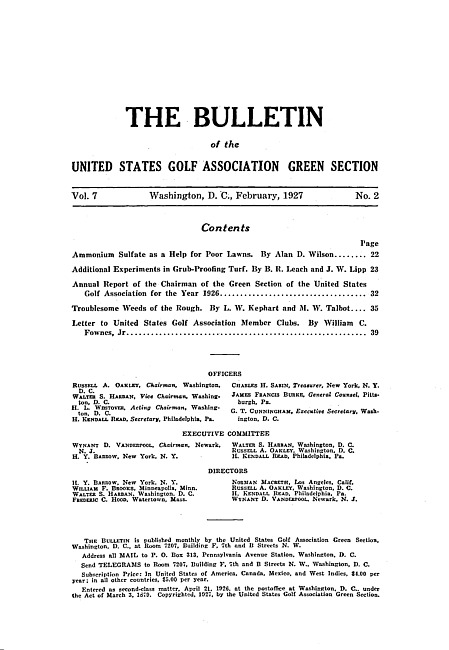 The bulletin of the United States Golf Association Green Section. Vol. 7 no. 2 (1927 February)