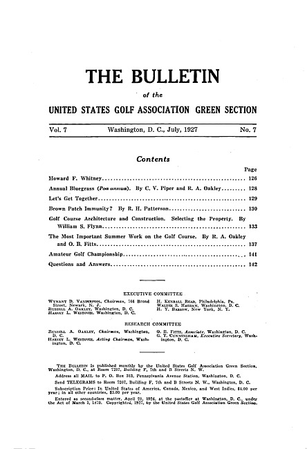 The bulletin of the United States Golf Association Green Section. Vol. 7 no. 7 (1927 July)