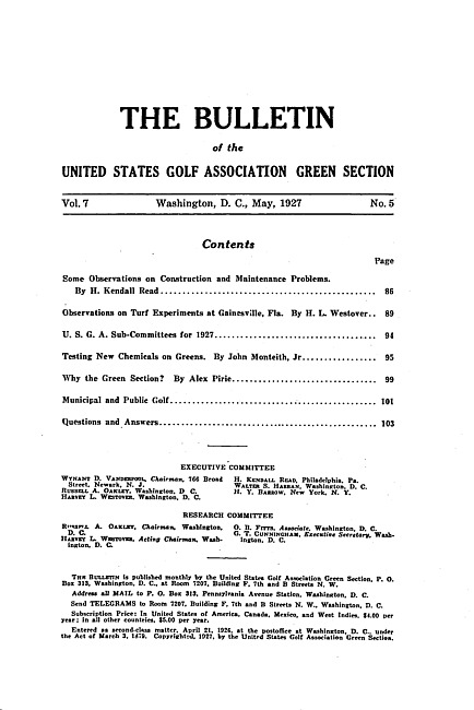 The bulletin of the United States Golf Association Green Section. Vol. 7 no. 5 (1927 May)