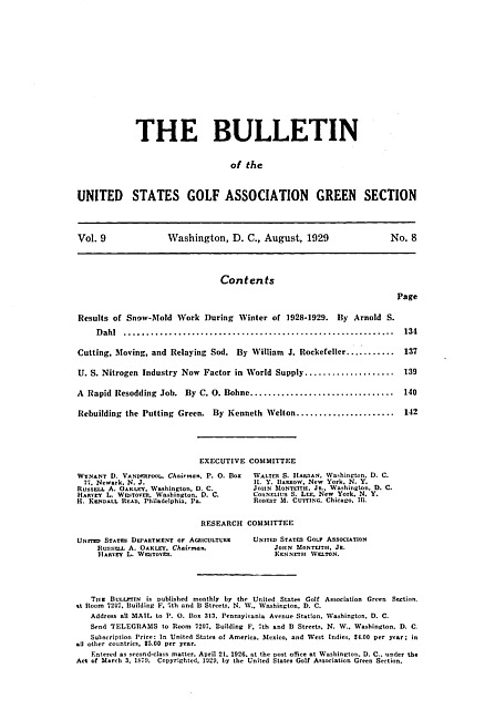 The bulletin of the United States Golf Association Green Section. Vol. 9 no. 8 (1929 August)