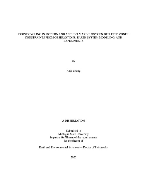 IODINE CYCLING IN MODERN AND ANCIENT MARINE OXYGEN DEPLETED ZONES : CONSTRAINTS FROM OBSERVATIONS, EARTH SYSTEM MODELING, AND EXPERIMENTS