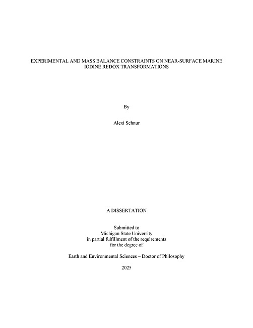EXPERIMENTAL AND MASS BALANCE CONSTRAINTS ON NEAR-SURFACE MARINE IODINE REDOX TRANSFORMATIONS