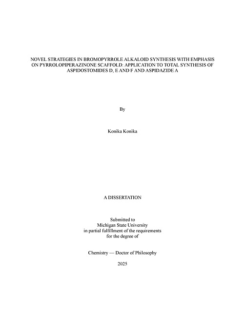 NOVEL STRATEGIES IN BROMOPYRROLE ALKALOID SYNTHESIS WITH EMPHASIS ON PYRROLOPIPERAZINONE SCAFFOLD : APPLICATION TO TOTAL SYNTHESIS OF ASPIDOSTOMIDES D, E AND F AND ASPIDAZIDE A