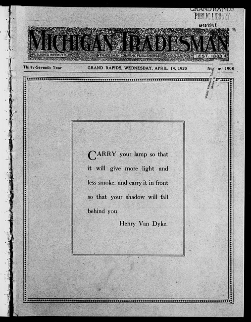 Michigan tradesman. Vol. 37 no. 1908 (1920 April 14)