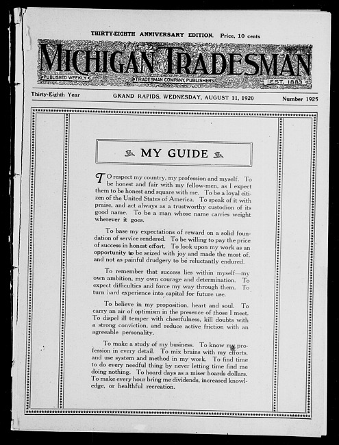 Michigan tradesman. Vol. 38 no. 1925 (1920 August 11)