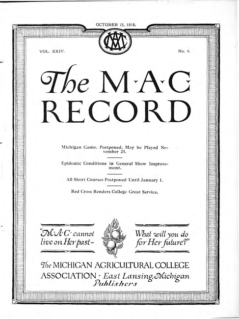 The M.A.C. record. Vol. 24 no. 4 (1918 October 25)