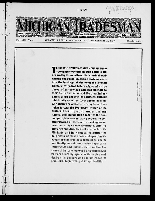 Michigan tradesman. Vol. 45 no. 2305 (1927 November 23)