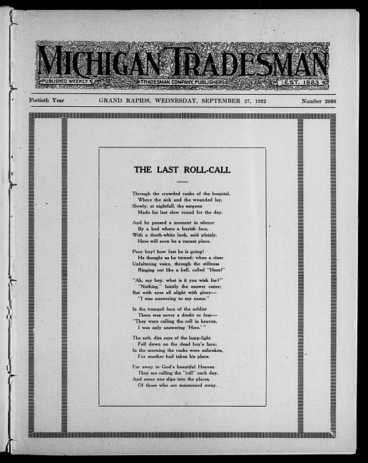 Michigan tradesman. Vol. 40 no. 2036 (1922 September 27)