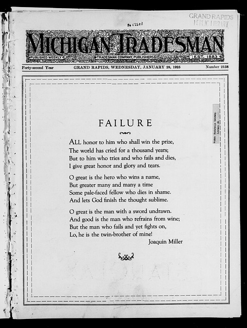Michigan tradesman. Vol. 42 no. 2158 (1925 January 28)