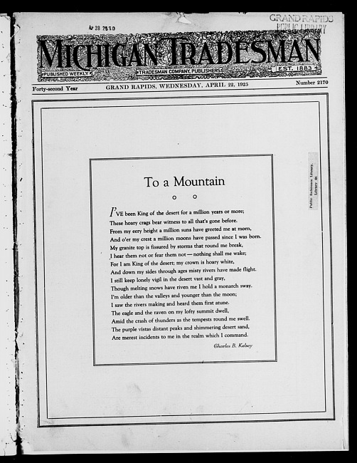 Michigan tradesman. Vol. 42 no. 2170 (1925 April 22)