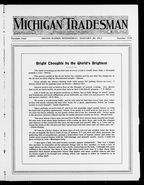 Michigan tradesman. Vol. 30 no. 1532 (1913 January 29)