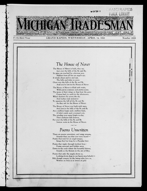 Michigan tradesman. Vol. 43 no. 2221 (1926 April 14)