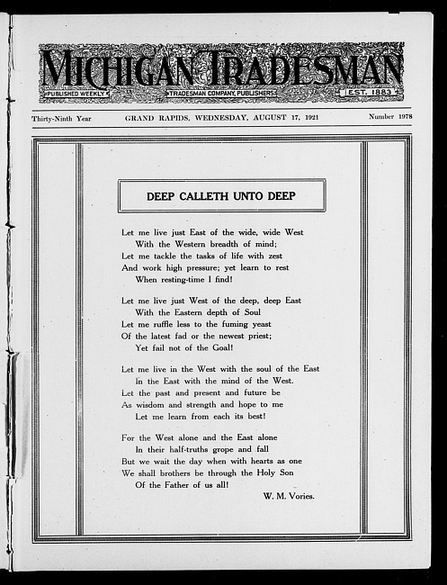 Michigan tradesman. Vol. 39 no. 1978 (1921 August 17)