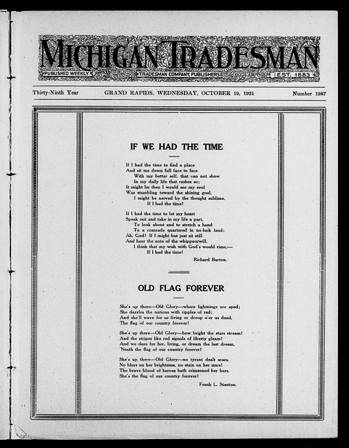 Michigan tradesman. Vol. 39 no. 1987 (1921 October 19)