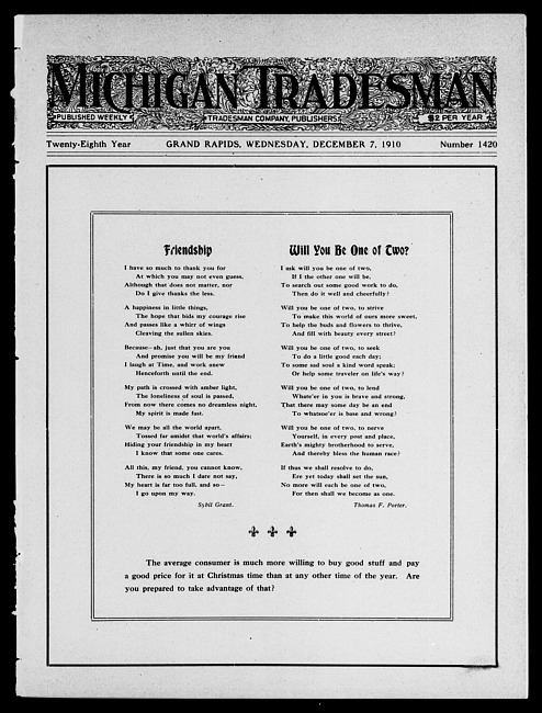 Michigan tradesman. Vol. 28 no. 1420 (1910 December 7)
