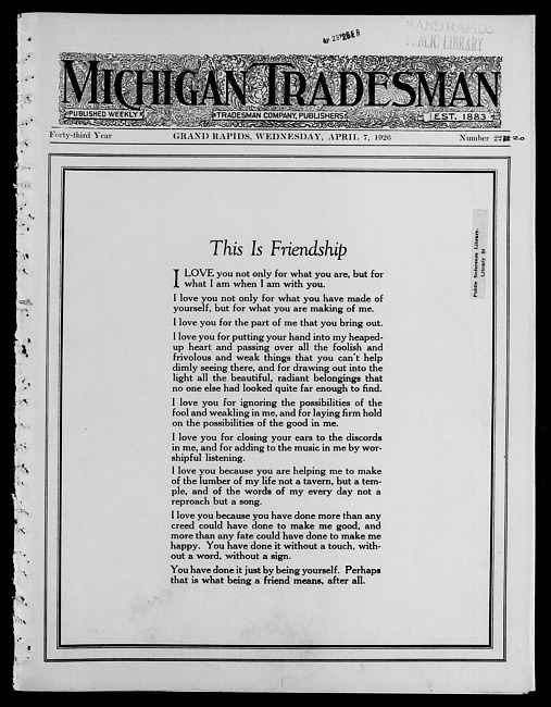 Michigan tradesman. Vol. 43 no. 2220 (1926 April 7)
