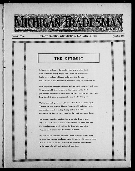 Michigan tradesman. Vol. 40 no. 2054 (1923 January 31)