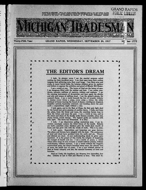 Michigan tradesman. Vol. 35 no. 1775 (1917 September 26)