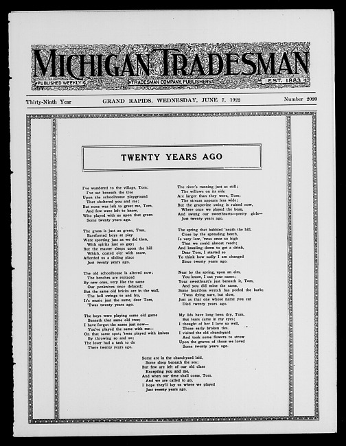Michigan tradesman. Vol. 39 no. 2020 (1922 June 7)