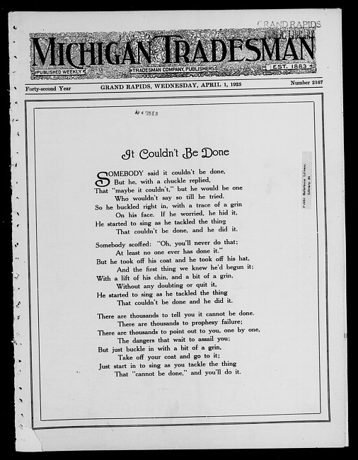 Michigan tradesman. Vol. 42 no. 2167 (1925 April 1)