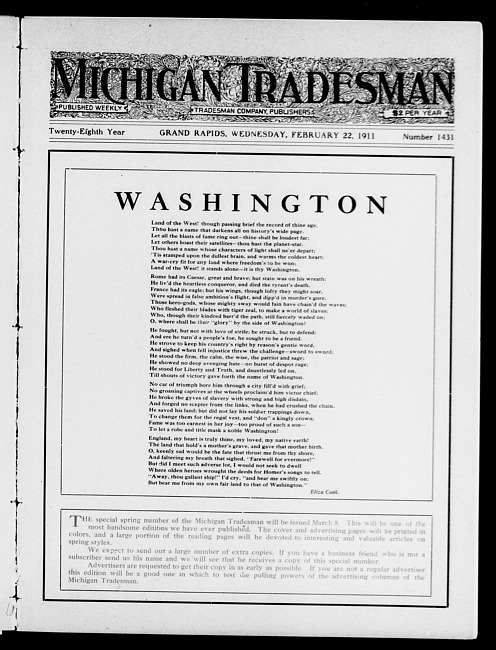Michigan tradesman. Vol. 28 no. 1431 (1911 February 22)