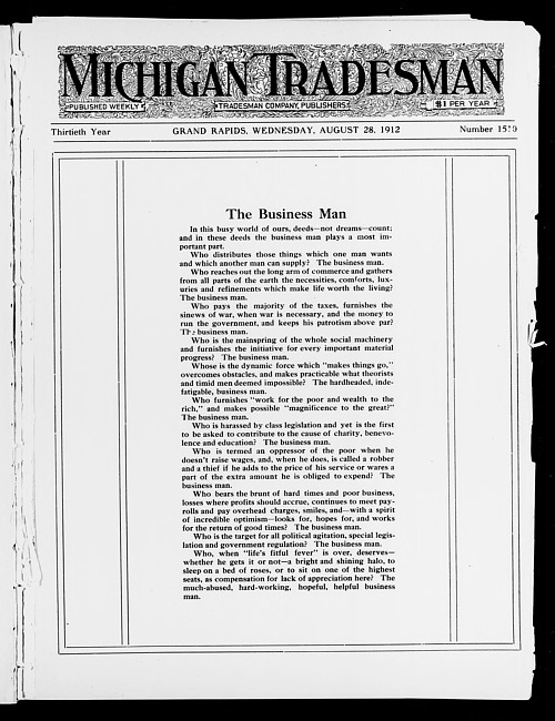 Michigan tradesman. Vol. 30 no. 1510 (1912 August 28)