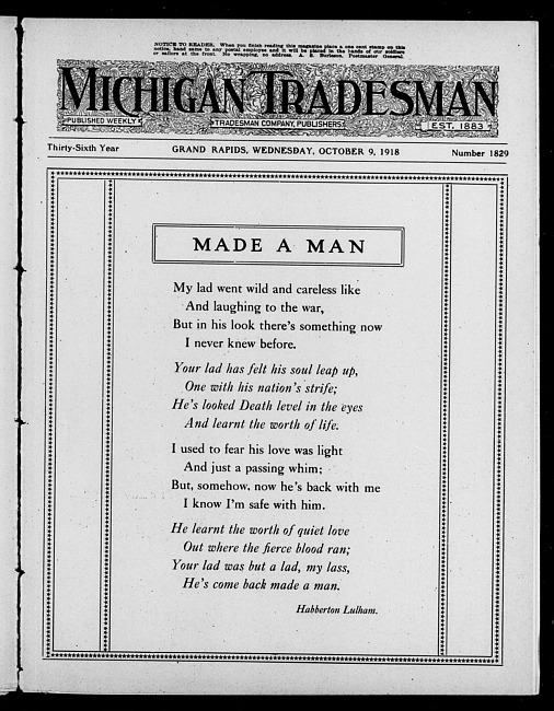 Michigan tradesman. Vol. 36 no. 1829 (1918 October 9)