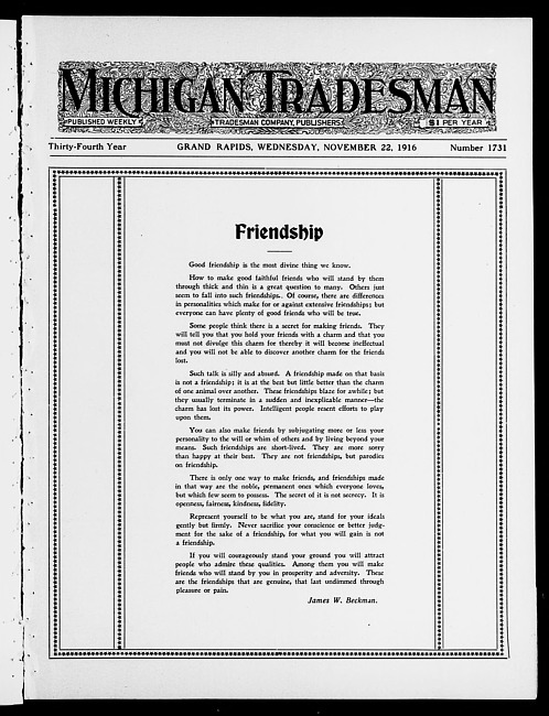 Michigan tradesman. Vol. 34 no. 1731 (1916 November 22)