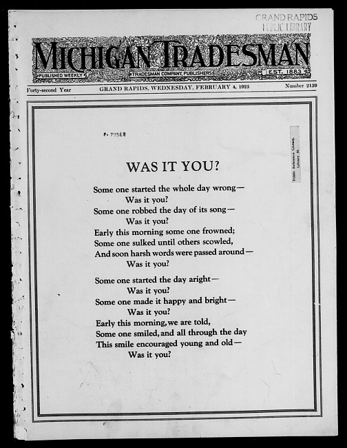 Michigan tradesman. Vol. 42 no. 2159 (1925 February 4)
