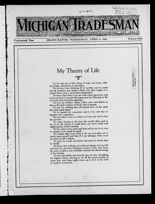 Michigan tradesman. Vol. 42 no. 2168 (1925 April 8)
