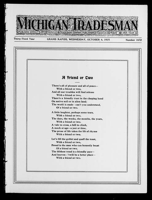Michigan tradesman. Vol. 33 no. 1672 (1915 October 6)