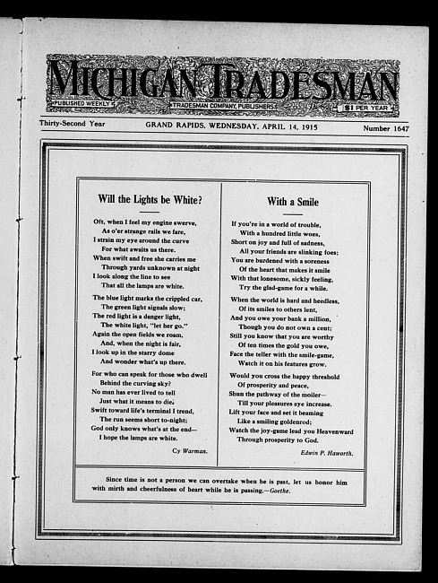 Michigan tradesman. Vol. 32 no. 1647 (1915 April 14)