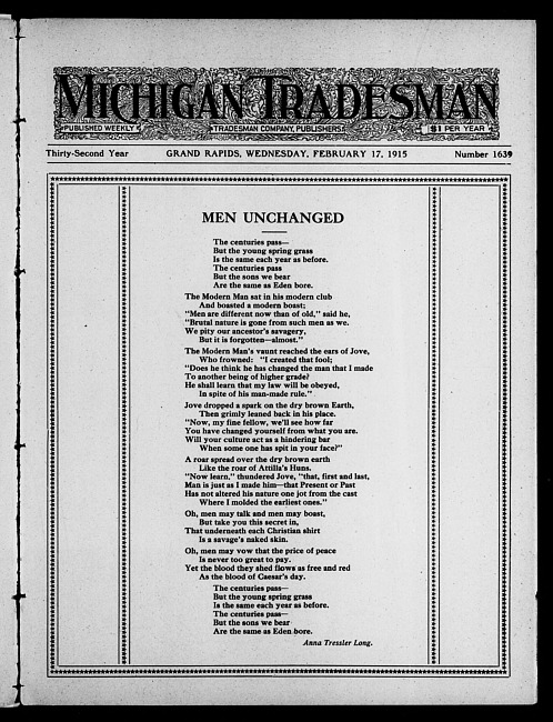 Michigan tradesman. Vol. 32 no. 1639 (1915 February 17)