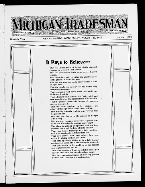Michigan tradesman. Vol. 30 no. 1560 (1913 August 13)
