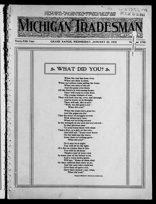 Michigan tradesman. Vol. 35 no. 1792 (1918 January 23)