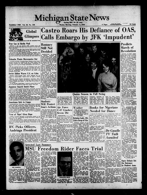 Michigan State news. (1962 February 5)