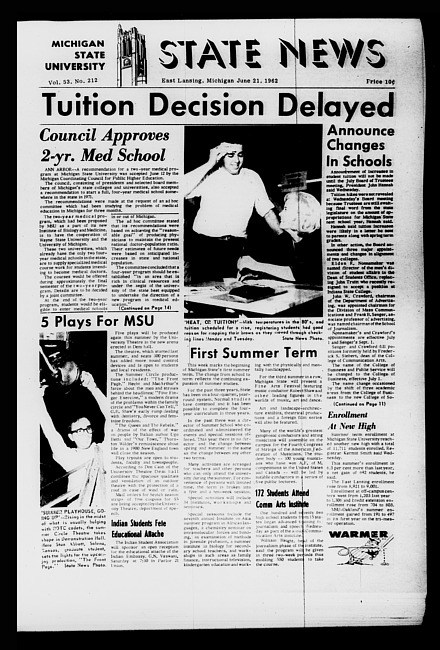 Michigan State news. (1961 June 2)