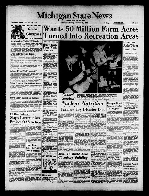 Michigan State news. (1962 February 1)