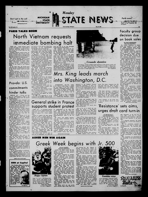 State news. (1968 May 13)
