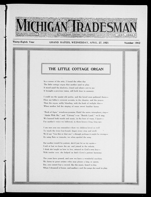 Michigan tradesman. Vol. 38 no. 1962 (1921 April 27)