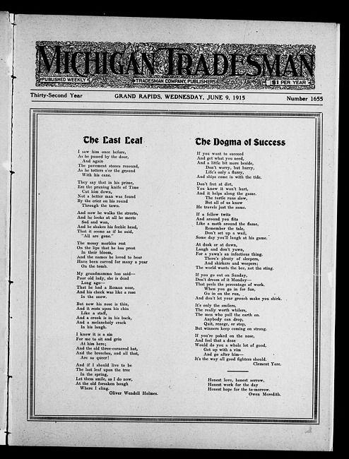 Michigan tradesman. Vol. 32 no. 1655 (1915 June 9)