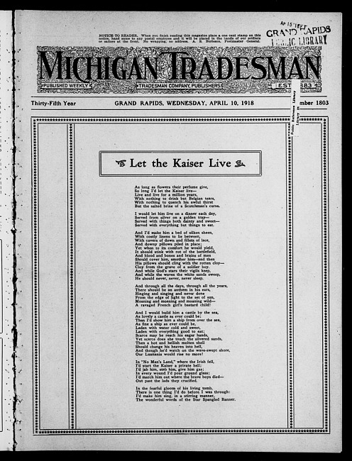 Michigan tradesman. Vol. 35 no. 1803 (1918 April 10)