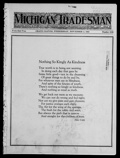 Michigan tradesman. Vol. 43 no. 2198 (1925 November 4)
