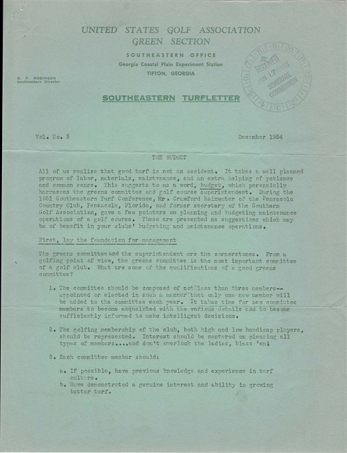 Southeastern turfletter. Vol. 1 no. 3 (1954 December)