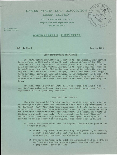 Southeastern turfletter. Vol. 1 no. 1 (1954 June)
