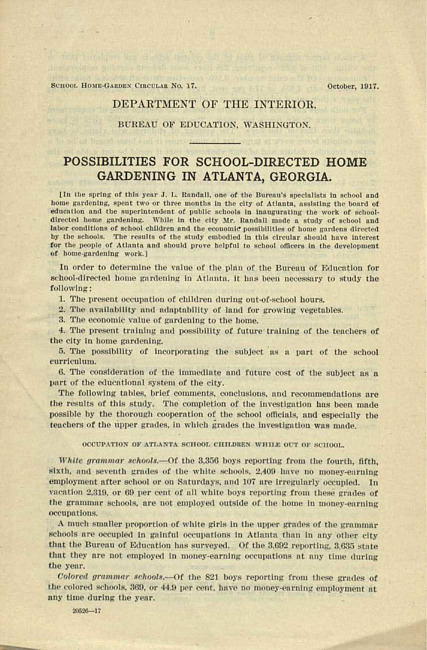 Possibilities for school-directed home gardening in Atlanta, Georgia