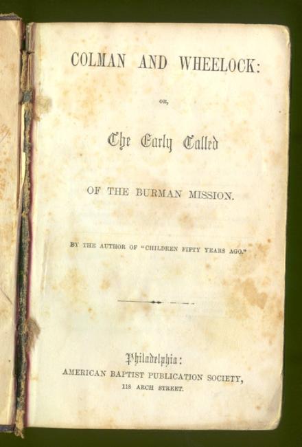 Colman and Wheelock, or, The early called of the Burman mission