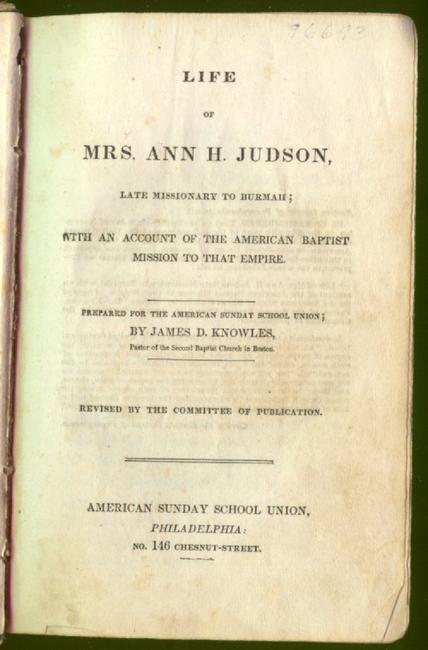 Life of Mrs. Ann H. Judson : late missionary to Burmah